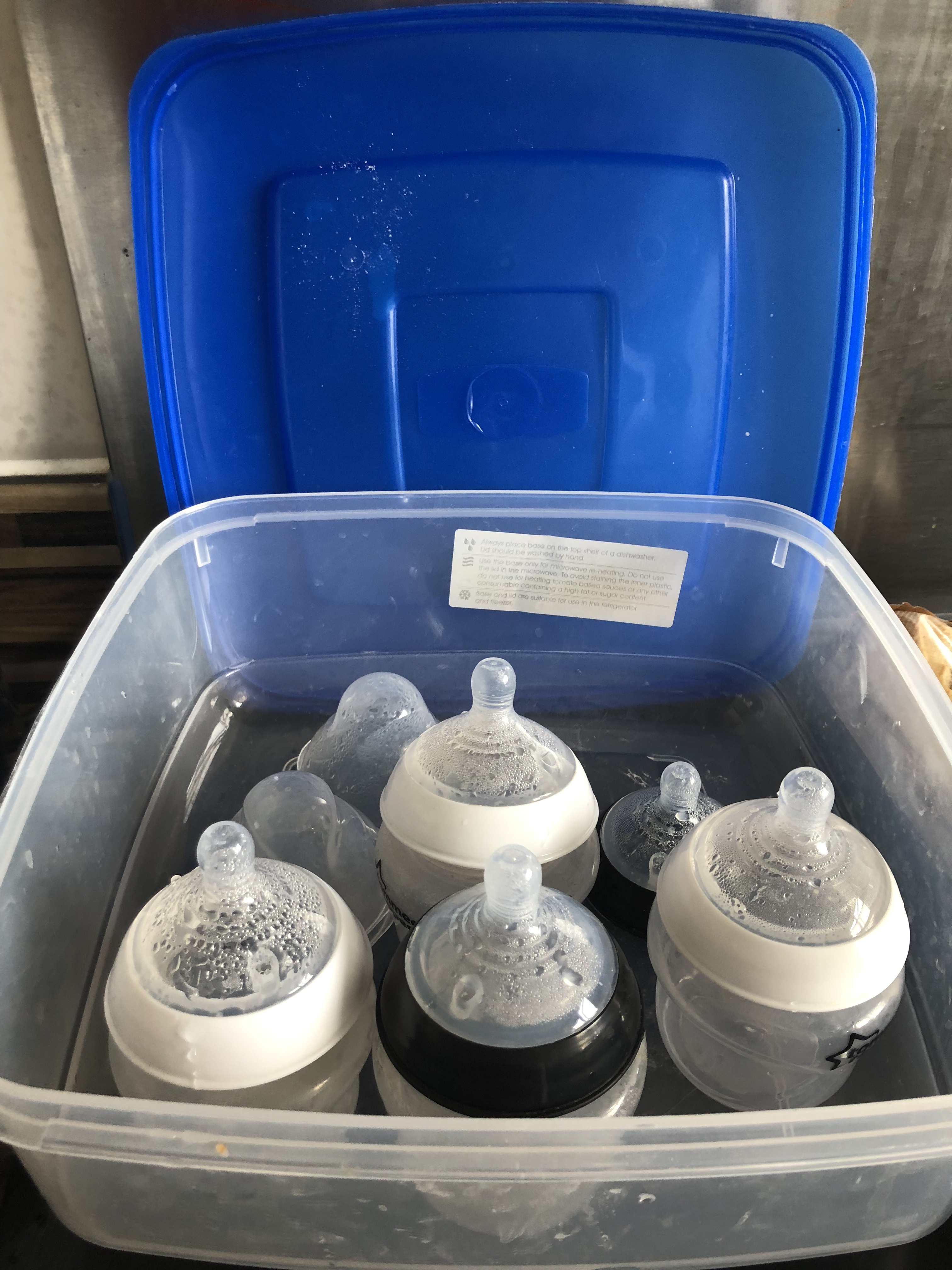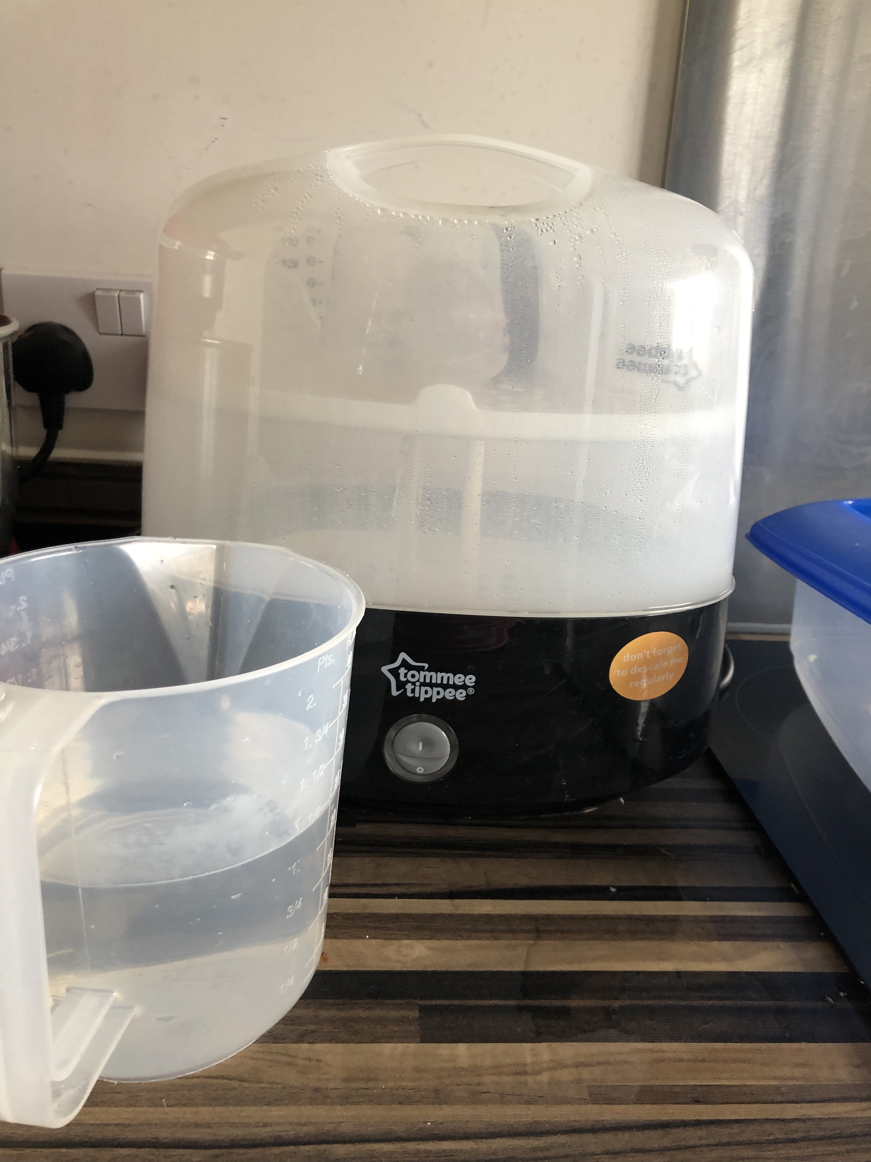 My kitchen currently looks like a little production line, I’ve never been so organised in my life! And trust me organisation is the key when having a baby. So next to the steriliser I have a box to put the sterilised bottles in so we know which ones are ready to use and we can grab them quick when making a bottle which is really handy.